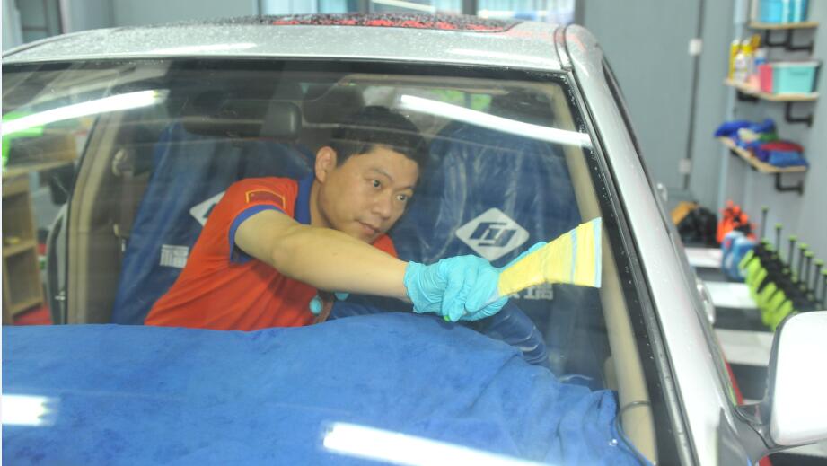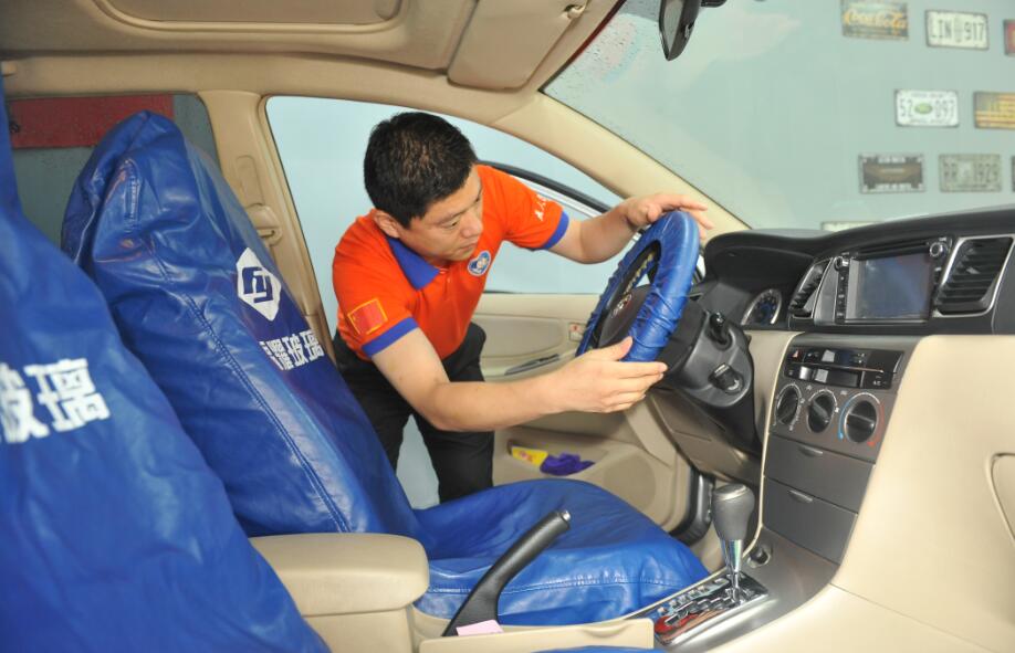 將毛巾或保護膜鋪在電子儀器上,避免噴水的影響。嚴格履行施工前的保護流程,用12件套對施工車輛進行貼切呵護